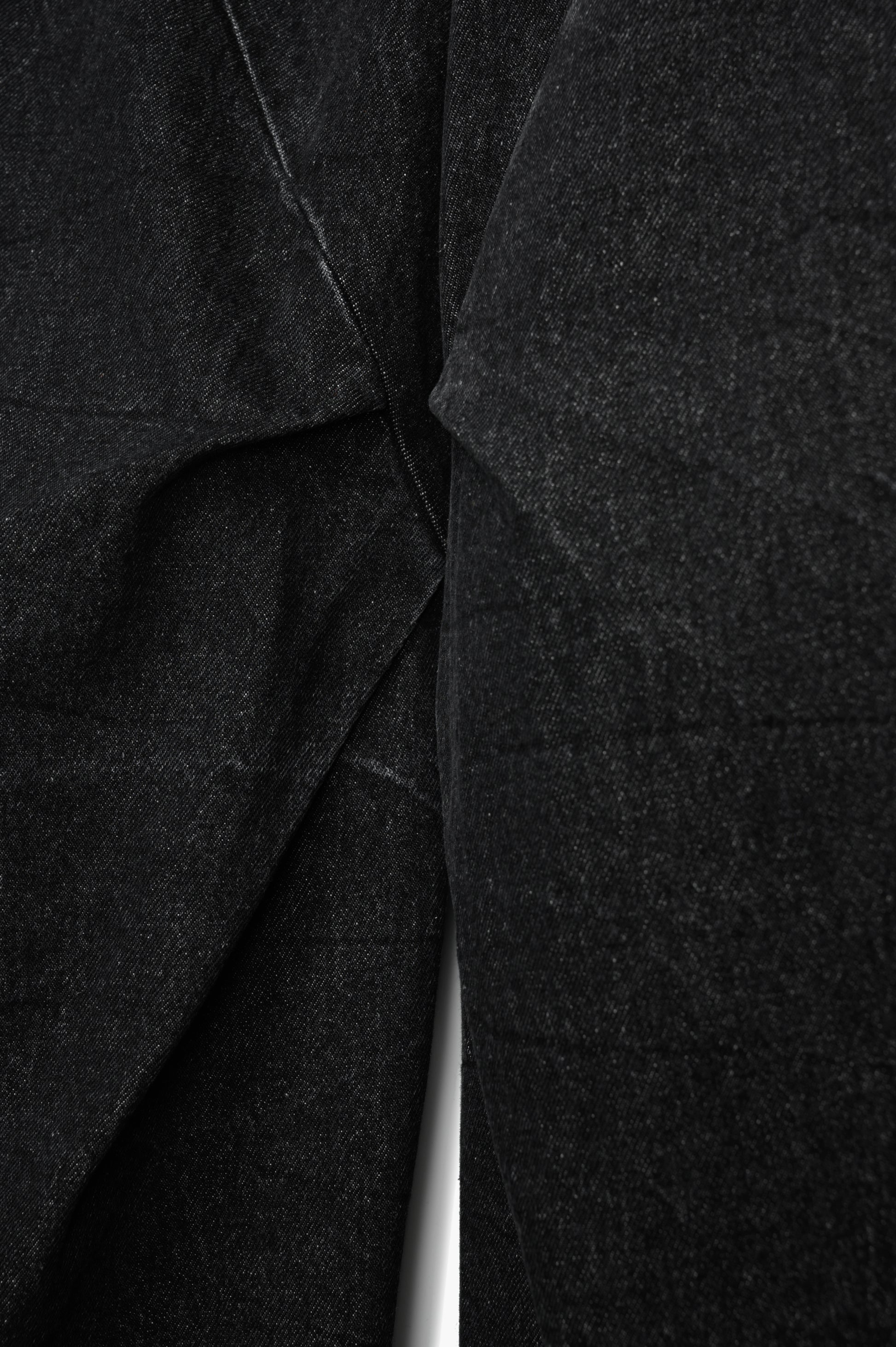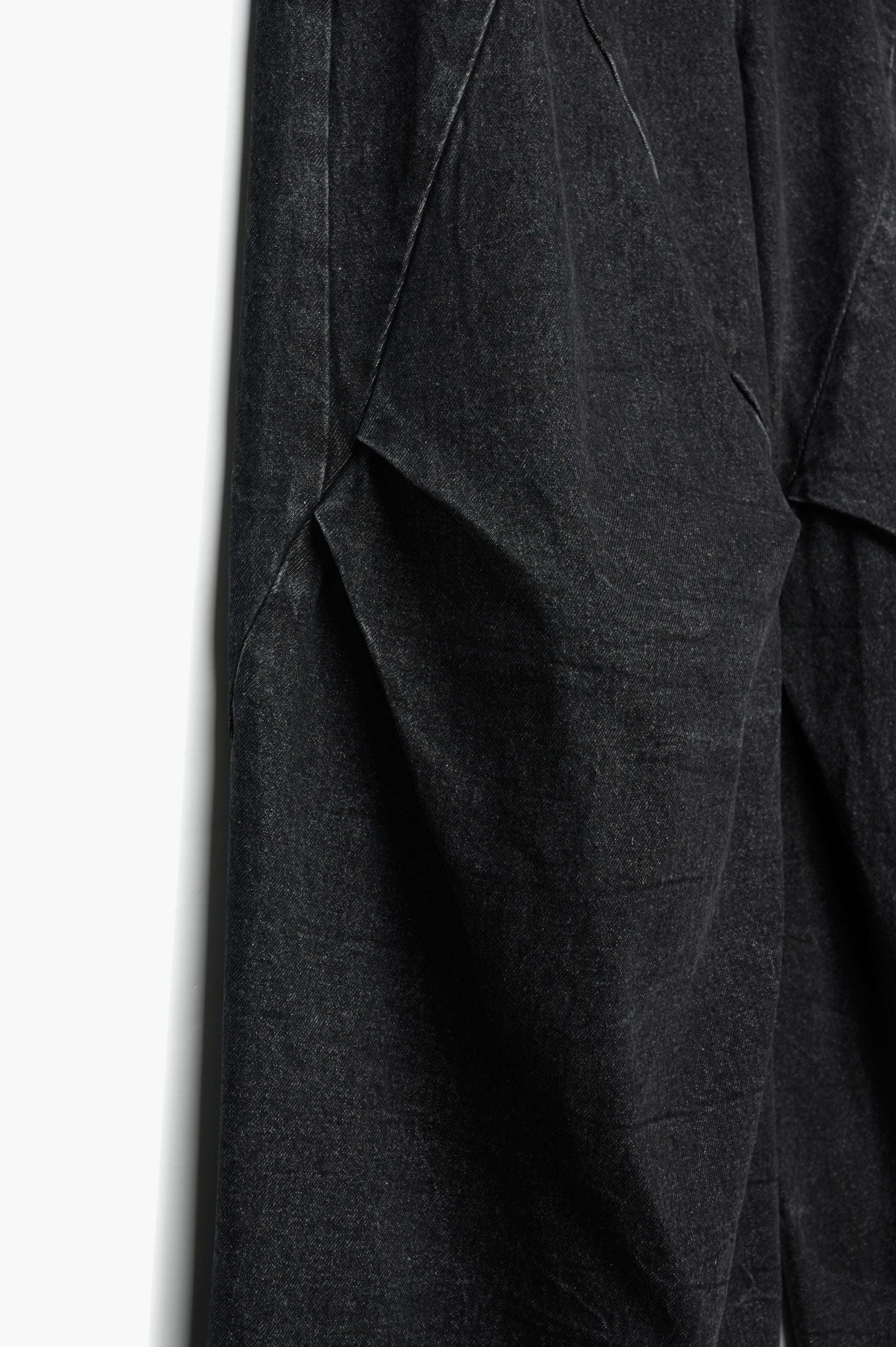 - Knee area with pleats of varying sizes, and mirrored '/' pockets on the sides